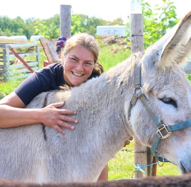 Charlotte is now expanding her dream by creating the Donkey Care Farm, a sanctuary dedicated exclusively to donkeys. This new space will provide safe homes for donkeys who are abandoned, abused, or in need due to unexpected life changes—something rare in Nova Scotia. The sanctuary will also support volunteers dealing with mental health challenges such as anxiety, PTSD, depression, or addiction. By caring for the donkeys, volunteers find a calming environment to heal and build confidence.